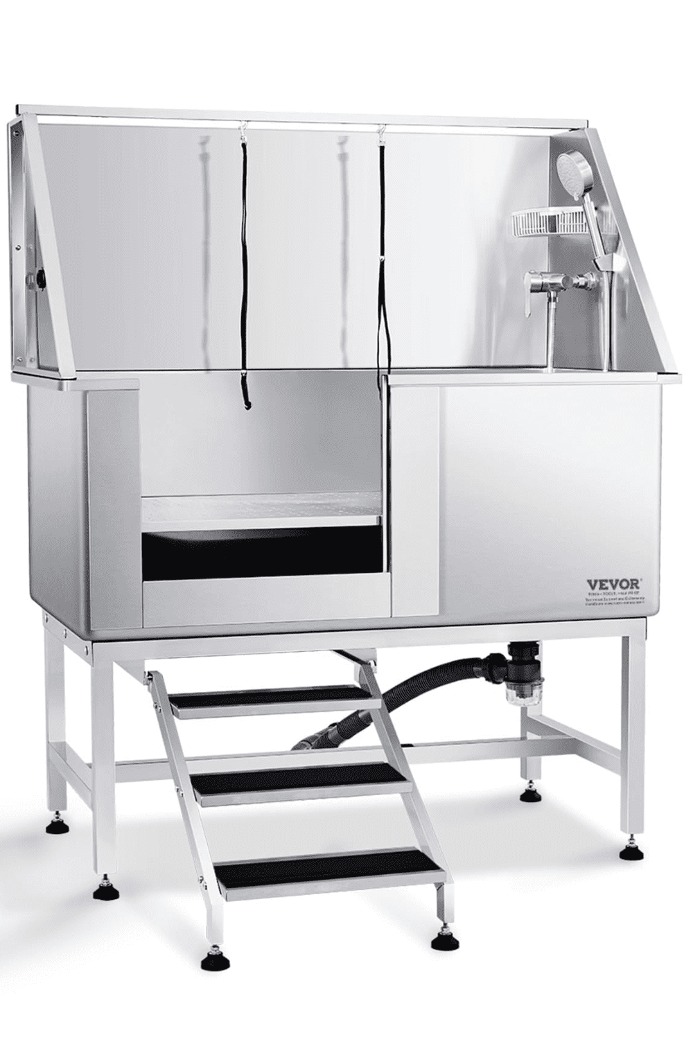 The station can fit into a mudroom or garage area. It should include a deep basin or tub that is easy to fill and drain. Non-slip flooring is important to keep pets safe while they’re being washed.